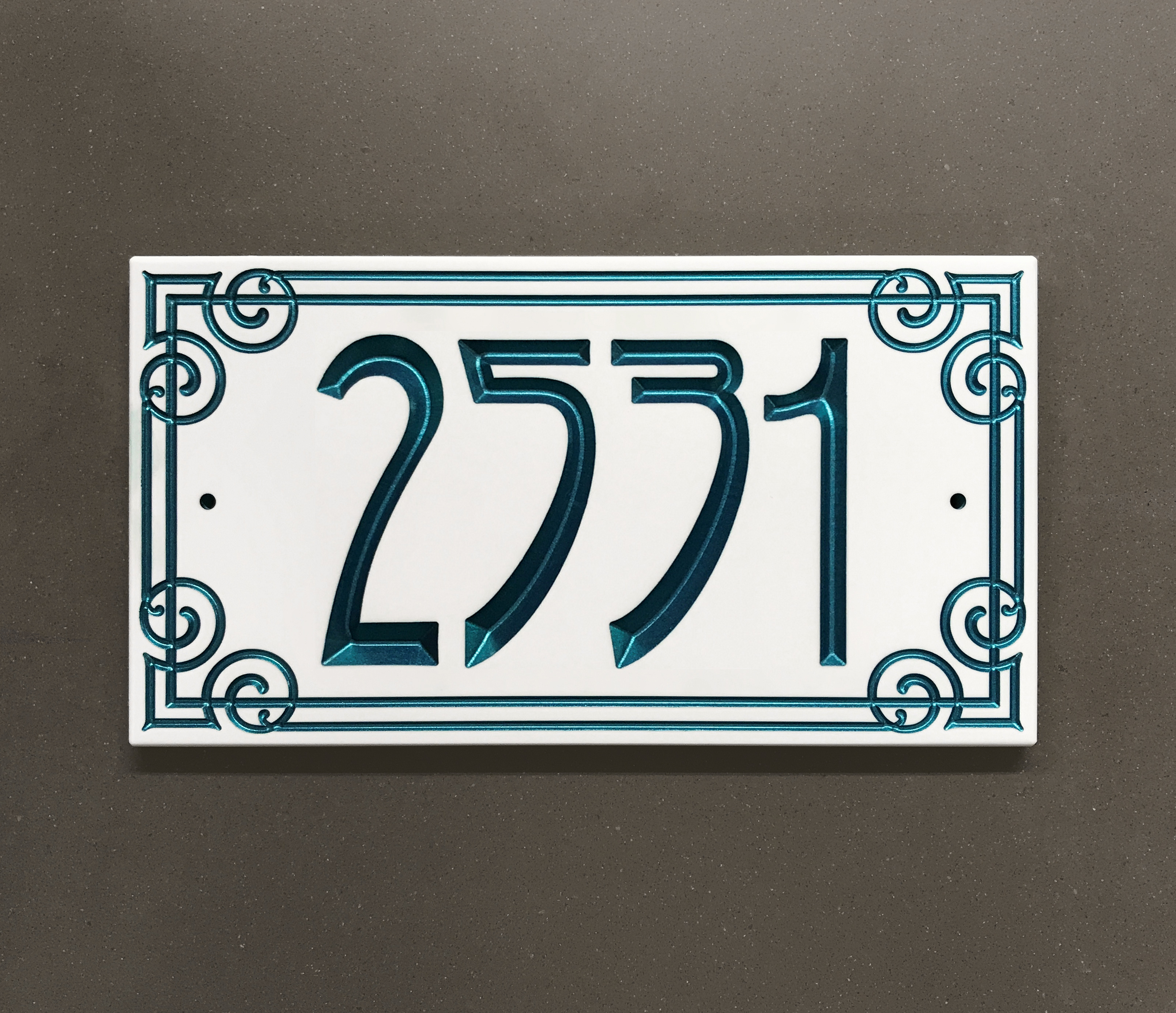 We exclusively use 1/2" thick solid surface Corian, a premium material known for its incredible weather resistance. Unlike wood or plastic, our signs won't crack, rot, or fade, ensuring your custom address looks brand new for decades to come.